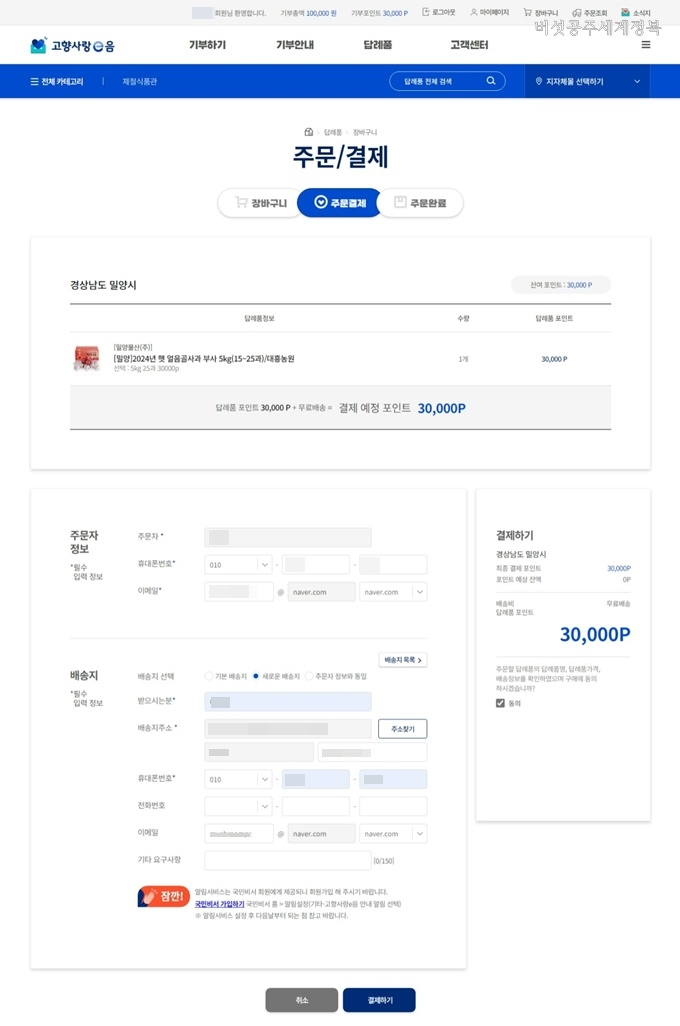 기부하고 나서 주문까지 해야 답례품 배송 옵니다