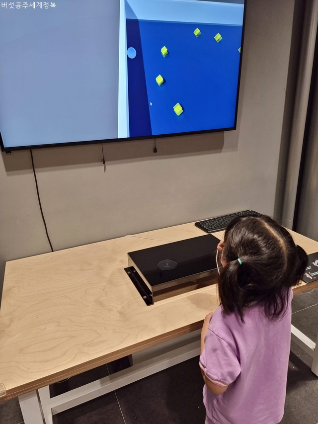 손을 대지 않고 오로지 뇌를 이용해 차를 움직인다는 게 무척 신기했어요. 방향을 조정하는 건 아니고, 오로지 집중력을 통해 차량의 속도를 올려 레이싱 경기를 펼치는 건데 초반엔 첫째가 뒤쳐지는 것 같더니 뒤이어 집중하여 속도를 올리는 모습을 보고 뒤에서 신랑과 함께 감탄했답니다.