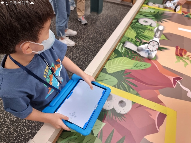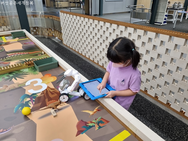 입장을 하면서 AI 목걸이를 받게 되는데 이미 목걸이를 건네 주는 것 또한 로봇 팔이 건네 주니 아이들이 무척 신기해 하더군요. 이미 시작부터 아이들의 흥미 유발 자극이 팍팍!