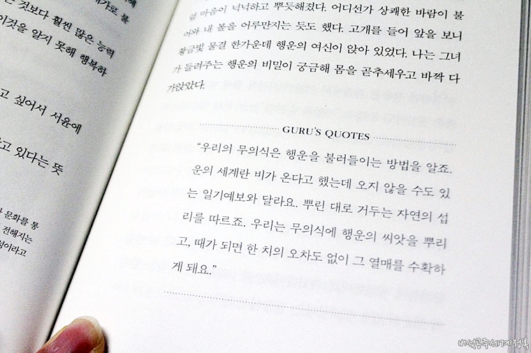 뭔가 재테크 서적이라고 하기엔 소설스러운 느낌을 많이 받아 초반엔 좀 거부감이 들었습니다. 본인의 주관을 담은 여러 재테크 서적과 다르게 이 책의 저자는 함께 쓴 공동 저자이긴 하지만 실질적인 주인공이 아닌 주인공의 영향을 받은 사람이라고나 할까요. 돈에 대해 이야기 하는 주인공은 '이서윤' 이라는 일명 대한민국 상위 0.01%가 찾는 행운의 여신이라네요. 응? 왠 행운의 여신? 사주, 관상에 능했던 그녀의 할머니의 발견으로 운명학에 입문했다고 합니다.