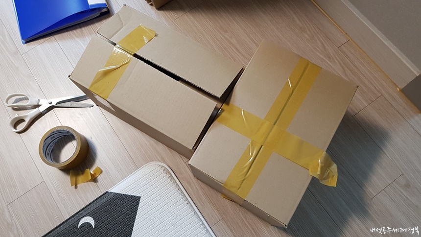 거실에서 어지럽혀져 있는 상처밴드를 치우고 있는 동안 둘째 행복이는 그 새 또 알파룸으로 와서 박스 포장을 도와주었더라... 울어야 할 지 웃어야 할 지. ㅠㅠ
