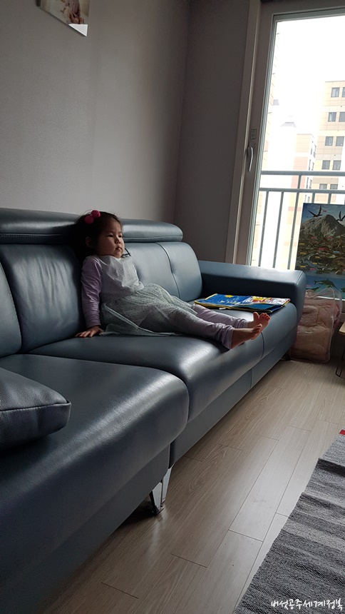 행복이는 행복이가 좋아하는 원피스를 입고서야 겨우, 소파 한 쪽에 자리를 잡았다.