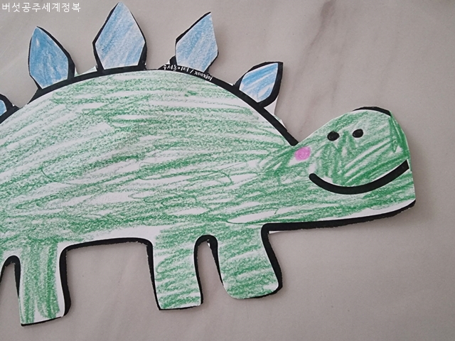 퇴근 후, 늘 그렇듯 두 아이의 유치원 가방을 정리하고 있었다. 다섯 살인 둘째 아이 가방 속 공룡 그림이 있어 살펴보니 둘째가 색칠을 한 듯했다. 세상에. 공룡이 이렇게 러블리할 수가 있나. 공룡마다 볼터치를 한 데다 알록달록 색상을 넣어 색을 넣은 것을 보고 참 예쁨 받고 큰 아이구나- 라는 생각이 들었다. 첫째가 둘째와 같은 다섯 살 이 무렵, 그린 그림은 무척 어두웠는데 말이다.