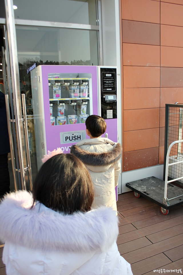 처인휴게소에는 '사랑의 자물쇠'를 위한 공간을 마련해 두었더라고요. 자판기에서 자물쇠를 구입해서 연인 사이, 함께 자물쇠를 걸면 색다른 추억이 될 것 같긴 합니다. 오늘이 첫 날임에도 불구하고, 먼저 자물쇠를 구입해 걸어 놓으신 분들이 많더라고요. 오후 3시 쯤 간 것이다 보니 어둡지도 않고, 조명이 들어오지 않아 느낌이 덜합니다만, 해가 진 이후 불빛이 들어오면 더욱 예쁠 것 같은 포토존도 마련되어 있어요. 아이들이 사진을 찍어 달라고 야단이었어요.