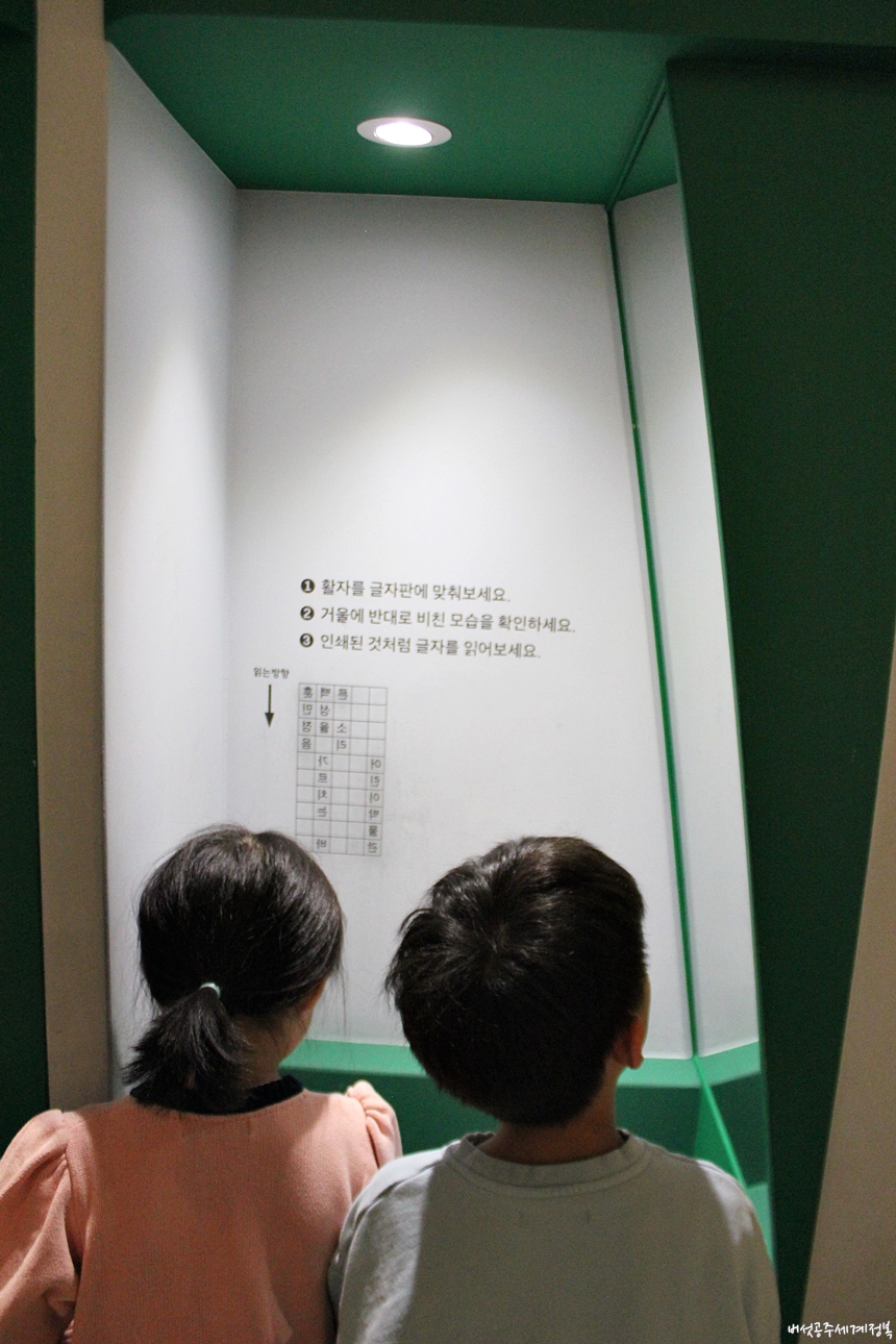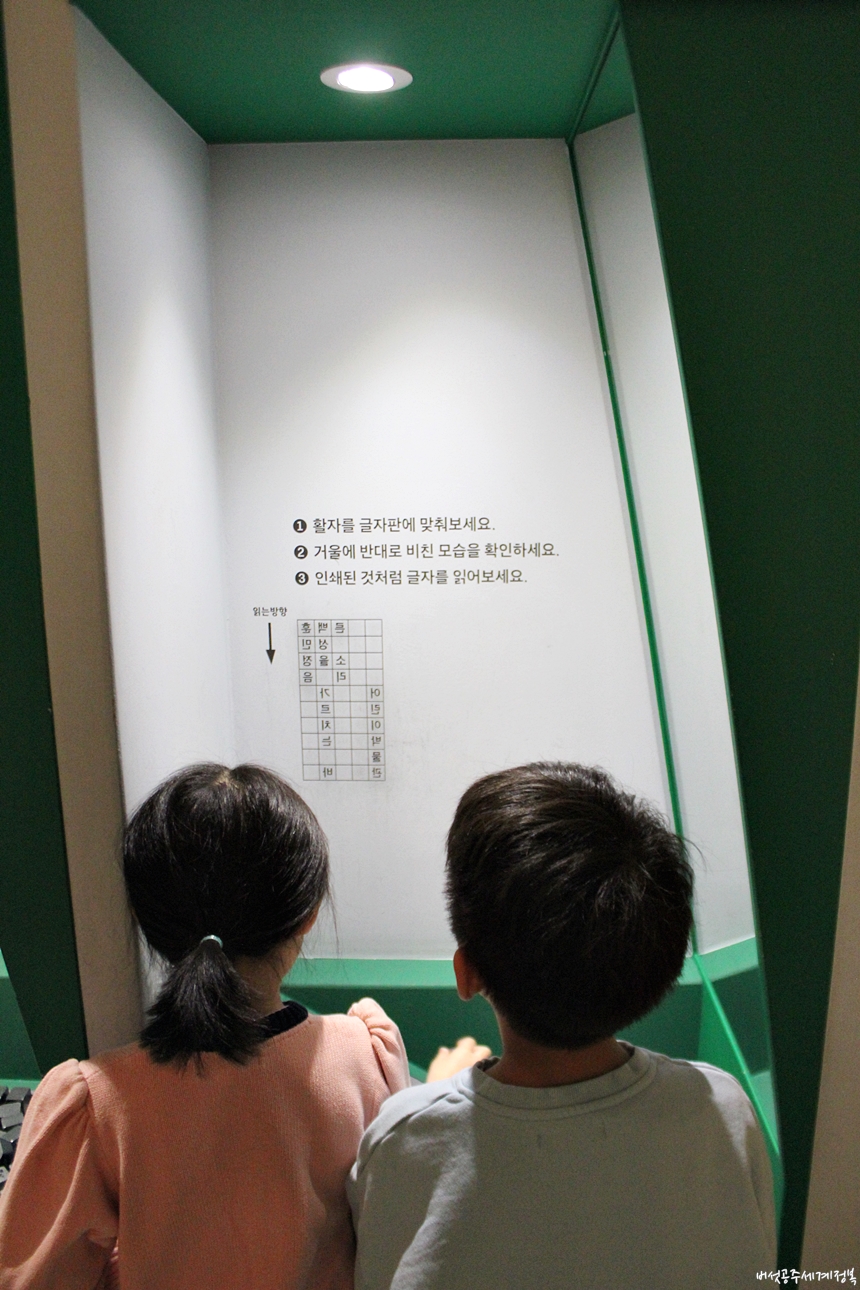 거울에 비친 글자를 또박 또박 아이들이 읽어 내려가는 모습이 무척 귀여웠어요.