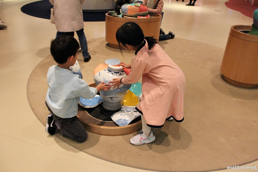 아래는 도자기가 조각별로 흩어져 있는데 조각을 맞춰 도자기를 완성하는 체험입니다.