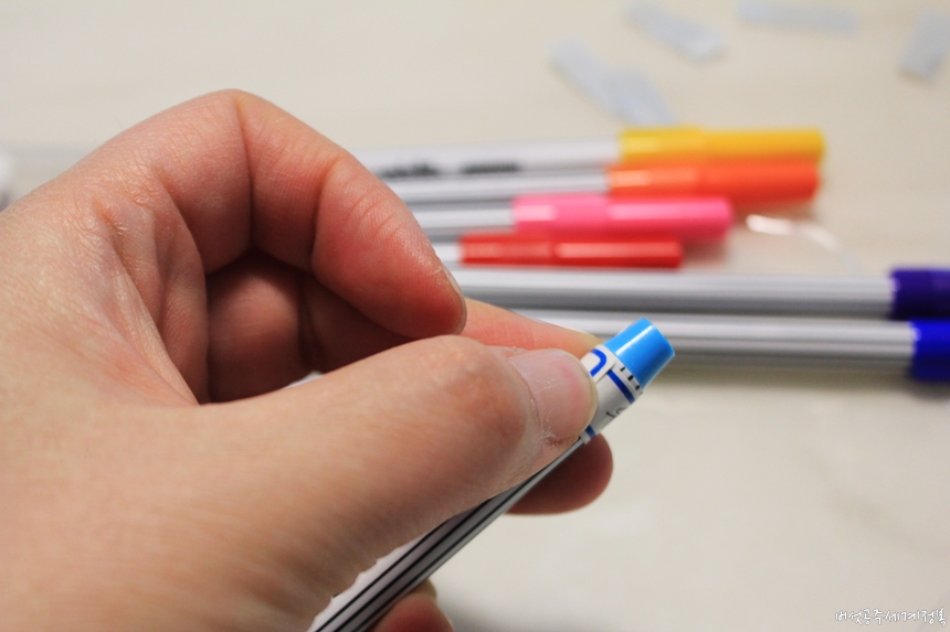 견출지에 이름을 예쁘게 써서 돌돌 말아 투명테이프로 다시 한 번 더 꼼꼼하게 감싸주었어요. 떨어지지 않게 말이죠. 어머니, 아버지가 신학기마다 예쁘게 이름 써주시던 모습을 물끄러미 바라보았던 기억이 너무 좋게 남아 있는데, 이제 제가 그러고 있으니 참 신기합니다.