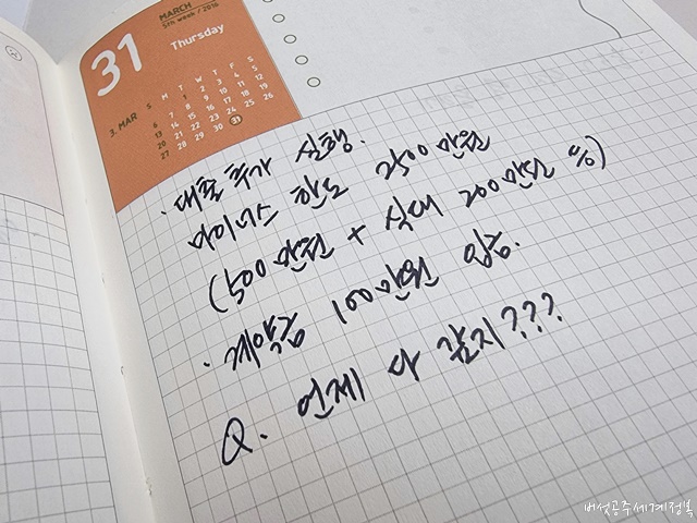 결혼을 하고 싶긴 한데, 돈이 없어서 결혼을 못한다는 후배의 이야기와 맞물려 제가 한창 결혼을 준비하던 시기의 복잡했던 마음이 담긴 다이어리를 발견해 다시 읽어 보았습니다. 2016년 그 때의 일상과 스케쥴, 그리고 제 감정이 기록되어 있죠.