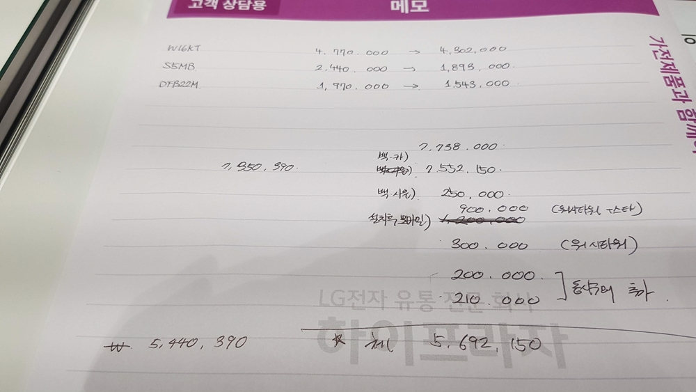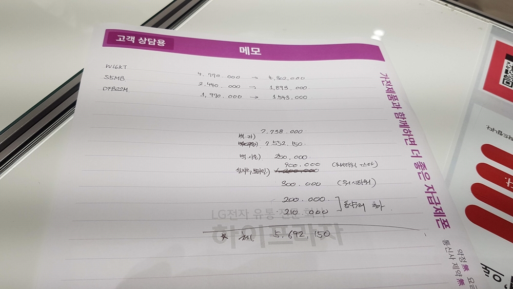 삼성전자와 LG전자를 두고 기웃기웃거리며 혜택을 비교하고 제품도 비교했는데 결론은 LG전자. 백색가전은 LG전자라며, 신랑의 말에 오케이! 하고선 백화점 내 LG전자로.