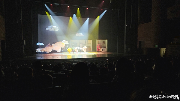 아쉽지만 신랑은 마무리 해야 하는 업무가 있어 공연장 근처 카페에서 기다리는 것으로 하고 두 아이를 데리고 공연을 보기 위해 강동아트센터 대극장으로 들어갔다.
