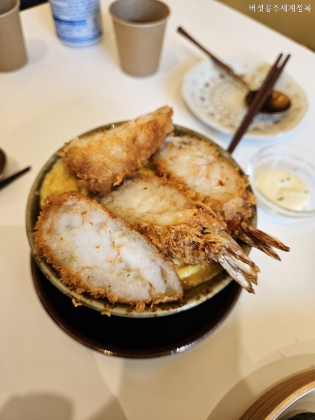 아래 메뉴가 에비텐 동입니다. 두 아이에겐 에비텐동과 명란크림가락국수 위주로 줬고, 신랑과 저는 메밀후토마끼와 명란크림우동을 옆에서 곁들이는 정도로 먹었습니다. 아이들이 너무 잘 먹어서 당황했네요. 게다가 사진 찍을 경황도 없이 명란크림우동은 순식간에 사라져 버렸습니다. 덜덜덜.