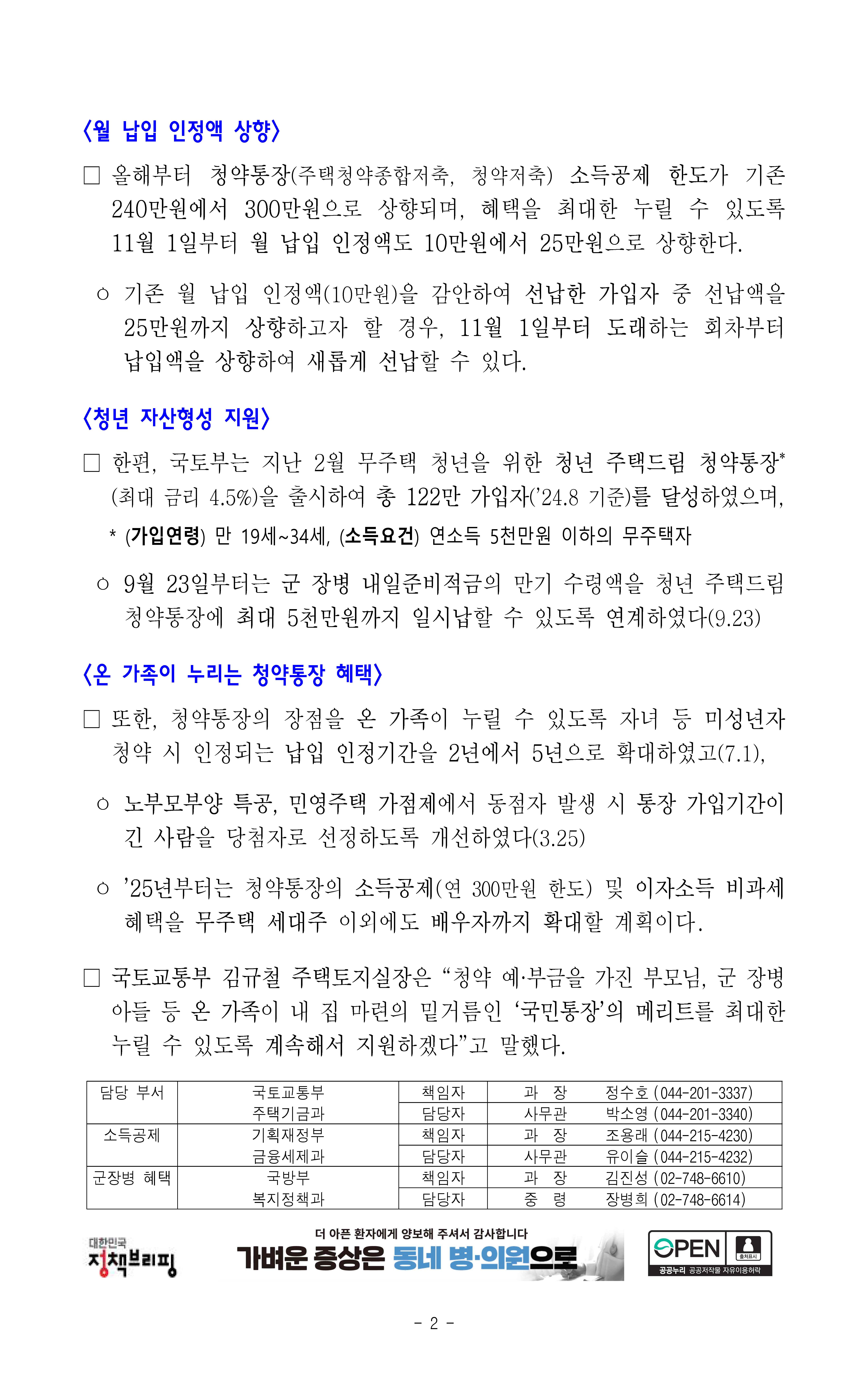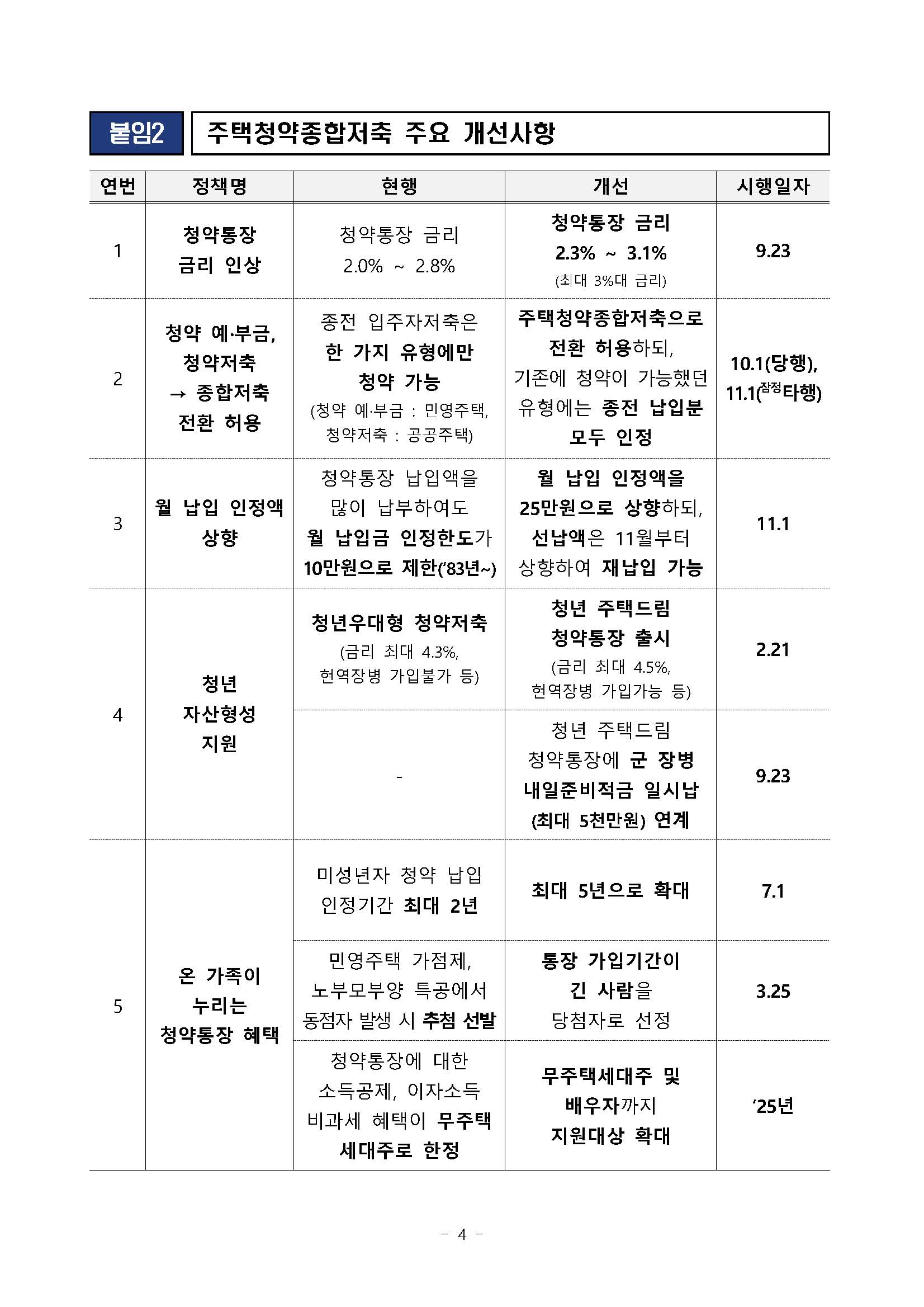 3. 청약통장 금리 인상 및 월 납입 인정액 상향