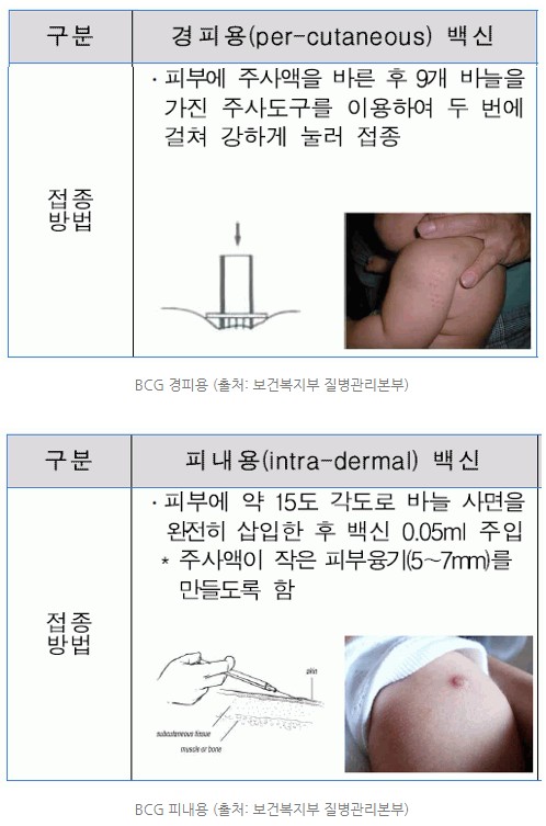 갓 태어난 신생아의 첫 주사, 불주사 BCG 경피용과 피내용