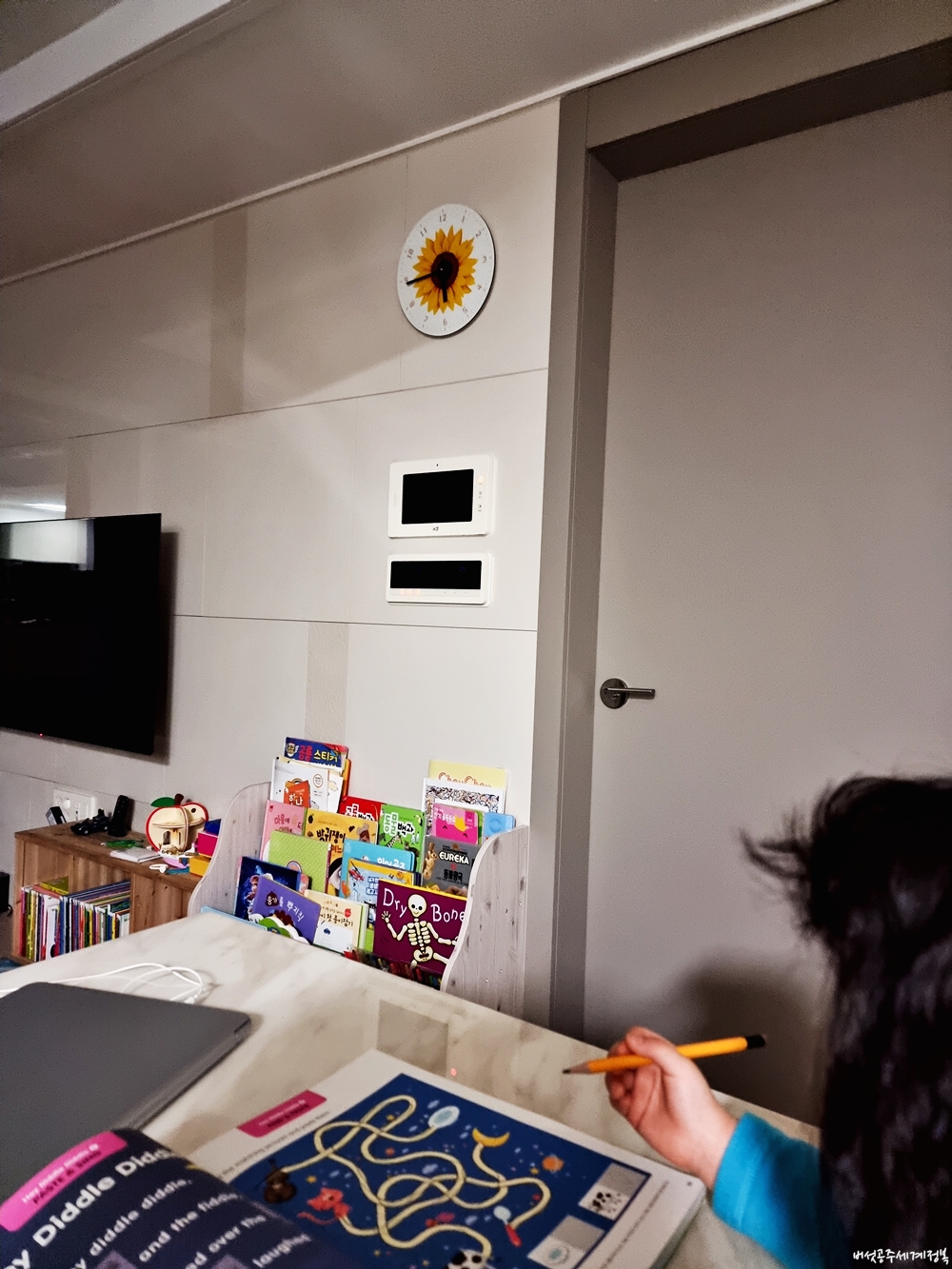 헉. 새벽인데... 너무 황당해서 사진을 찍어뒀죠. 새벽 5시 45분에 깬 둘째 딸은 이른 시각부터 미로찾기를 시작으로 영어공부를 했습니다. 이쯤 되니, 더 자고 싶은데 더 자지 못해 지친 엄마... 둘째 딸이 혼자서 공부할 학습지가 있으면 좋겠다 싶었죠.