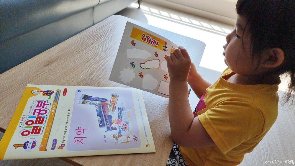이제 일일공부 학습지를 받기 시작한 지, 4개월차 입니다. 아이가 싫증 내지 않는 한, 일단 계속 구독할 것 같은데요. 다음해면 둘째 딸은 유치원에 갈 수 있는 나이더라구요. 이제 첫째 오빠와 함께 유치원에 다니면 맞벌이 부부인 저희에겐 좀 더 육아를 하기 나아지는 환경이 갖춰질 것 같아 기대하고 있습니다. (현재 어린이집은 낮잠을 자야 하지만, 유치원에 가면 낮잠을 자지 않으니 좀 더 밤에 일찍 자고, 밤잠도 길어지지 않을까 기대하고 있어요)